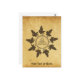 Neuf corbeaux animés (Corvus corax) entourent un anneau norse/celtique noué. Un triquetra, une figure triangulaire de trois arcs entrelacés, apparaît au centre. Tout est superposé sur une vieille image arrière - plan en papier, ce qui lui donne une atmosphère médiévale. Customisez en ajoutant votre propre texte.