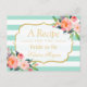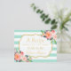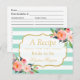 Carte de recette de douche nuptiale florale à rayures vert menthe. Pour une personnalisation supplémentaire, veuillez cliquer sur le lien "personnaliser davantage" et utiliser notre outil de conception pour modifier ce modèle.