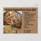 Il s'agit d'une carte de recettes pour une croûte à pizza très riche en protéines, sans gluten. C'est l'une des nombreuses recettes développées par K. Ivie pour le blog Stitching Rembris. L'avant de la carte montre des photos et des ingrédients tandis que l'arrière fournit les instructions. La recette est particulièrement bonne lorsqu'elle est faite avec de la sauce barbecue et du poulet grillé.