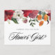 Seras-tu ma fille aux fleurs ? Demandez à votre famille et à vos amis de faire partie de votre mariage avec cette élégante carte botanique de fête de la mariée. Il est composé d'amaryllis blanc, rouge, violet, roux et orange, de pivoines, de ranunculus et de chrysanthèmes. La carte florale fleurie fille proposition est parfaite pour les mariages de automne et les mariages de Noël. Personnalisez en ajoutant un message.