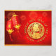 Carte Postale Red Gold Lanterns Chinois Rabbit papier coupé 2023