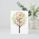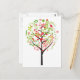 Arbre vert rouge et carte postale aux oiseaux mignons, avec un arbre vert rouge coloré avec une variation de feuilles et d'oiseaux.