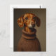 L'oeuvre représente un portrait très réaliste et stylisé d'un dachshund portant un pull-overs brun texturé et confortable. Les yeux expressifs du chien et la fourrure détaillée sont capturés avec une qualité presque photographique, donnant à la pièce une atmosphère chaleureuse et intime. L'arrière - plan muet vient compléter les riches tons du manteau et du pull de la dachshund, mettant en évidence l'apparence digne mais adorable du sujet.