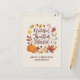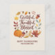 Rassemblez vos proches dans un style automnal cosy avec cette charmante carte de Thanksgiving à motif dinde. Conçue avec des tons automnaux chauds et festifs, illustration Remerciant Reconnaissant Bénis entourée de feuilles d'automne.