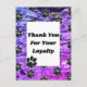 Cette carte de remerciement d'entreprise présente un motif d'empreintes de pattes noires sur un fond à motif abstrait bleu et violet. De petites empreintes de pattes noires apparaissent sur toute la carte. Un grand rectangle uni fournit un espace pour vos mots de remerciement à vos clients fidèles. Personnalisez rapidement et facilement.