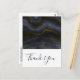 Carte de remerciement avec une belle image de pierre d'agate abstraite foncée. Les couleurs tourbillonnent en vagues. Les couleurs principales sont le noir, le gris-bleu avec un ruban doré faux qui traverse le design. Moderne et tendance.
