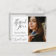 Une carte de remerciement de fin d'études moderne et chic. Le recto peut comporter n'importe quelle photo de diplômé préférée avec le remerciement en écriture tendance, la promotion et le nom du diplômé. Le verso propose un modèle de texte pour un message générique et de l'espace pour plus. Changez la couleur de fond pour un thème scolaire ou pour compléter votre photo de diplômé.