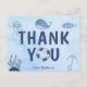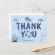 Cartes de remerciement pour une baby shower de plage mignonne. Belle carte de remerciement à thème d'animaux de l'océan à l'aquarelle bleue présentant une bouée de sauvetage nautique comme le O dans VOUS. De mignons animaux côtiers entourent votre message personnalisé, y compris une baleine et un poisson sous la mer.