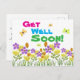 Égayez la journée de quelqu'un avec cette jolie carte de vœux « Remets-toi vite » ! Avec un design joyeux sur le devant orné de fleurs et de papillons, et les mots « Remets-toi vite », elle apporte chaleur et positivité. Au verso, vous trouverez un message sincère et un espace pour l'adresse du destinataire.