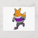 Carte Postale Renard au patinage sur glace avec patins sur glace