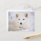Photo d'un mignon renard blanc arctique reposant dans la neige. L'animal a de la fourrure blanche et des yeux bruns et vous regarde. Une vraie diva ! Timbre correspondant : com