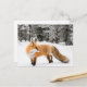 Renard rouge avec queue boisée dans neige blanche froide. Grande forêt de pins verts en arrière - plan. Belle nature.