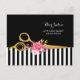 Cartes postales de rendez-vous tendance à rayures noires et blanches pour un salon de coiffure avec une paire d'élégants ciseaux de coupe de cheveux en faux or, agrémentés d'une floraison de belles fleurs roses et or. Personnalisez ce magnifique design de cheveux et de beauté en ajoutant le nom de la coiffeuse, les coordonnées et le rappel de rendez-vous. Image imprimée plate, PAS de feuille d'or.