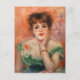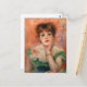 Renoir Jean Samary dans une carte postale à col bas. L’un des portraits les plus charmants de Renoir, sa représentation de Jeanne Samary utilise le rose et le vert caractéristique de la meilleure oeuvre de l’artiste. La jeune tête rouge penche vers le spectateur, menton à la main, avec un léger sourire et un léger regard de ses yeux bleus. La robe verte qu'elle porte accentue ses épaules et son visage. Un grand cadeau pour les amateurs de Pirre-Auguste Renoir, d'impressionnisme, de portraits célèbres et d'art français.