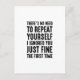 Il n'y a pas besoin de se répéter Je t'ai ignoré la première fois