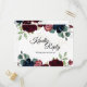 Cette carte postale mariage "Célébration d'été" inspire une atmosphère fleurie traditionnelle et élégante pour un mariage de jardin. Avec des fleurs bordeaux roses, bleu royal et cabernet, le riche palais rouge et marine combiné à la parties scintillant d'or complètent les thèmes formels du printemps, de l'été et de l'automne, créant une expérience classique et polyvalente de mariage de luxe. La carte postale permet à vos invités d'obtenir un rsvp facile tout en éliminant le besoin d'une enveloppe.