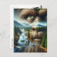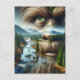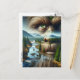 Une magnifique illustration de Sasquatch avec Bigfoot, montagnes, orignaux, une carte postale de rivière et de rivière pour rester en contact avec vos amis et votre famille pendant que vous êtes en train de squatter!