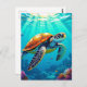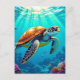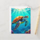 Belle illustration aérienne d'une tortue de mer nageant à travers l'océan avec une carte postale colorée vibrante. Si vous voyagez, en vacances ou que vous collectez simplement des cartes postales, voici une carte unique pour vous!