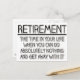Retraite, le temps dans votre vie quand vous pouvez ne faire absolument rien et partir avec lui, citation hilare de retraite. Ce dire mignon et drôle de retraite qui ferait un cadeau humoristique de retraite pour une partie de retraite.