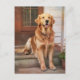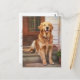 Cette carte postale présente un beau retriever doré attendant que son propriétaire revienne à la maison.