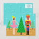 Les jouets ont pris vie sur cette carte postale Retro Christmas Toy Parade Photo ! Le design minimaliste est composé d'une gracieuse ballerine et d'un craquelin coloré posé sur une scène à grains de bois. Un sapin vert de Noël au design géométrique plus vert éclatant sépare les deux jouets. Derrière le duo ludique, on peut voir deux arbres de Noël de plus, l'un vert avec des pois blancs et l'autre un motif de chevrons vert et blanc. La toile de fond est turquoise avec la chute de neige bleu clair. La ballerine porte un tutu rose et des chaussures d'orteils. Ses cheveux blonds sont dans un chignon classique. Le puissant casse-noix porte une veste rouge et or aux accents noirs et une large ceinture noire. Il a même un casquette impressionnant à égaler! Son pantalon bleu royal est encastré dans de hautes bottes noires. (Mieux vaut marcher, ma chère !) Les visages de la paire sont prêts pour vos photos ! C'est vrai ! Vous n’avez pas besoin d’une photo professionnelle, ni même d’une photo avec les deux sujets ensemble. Avec ce design délicieusement fantaisiste, vous pouvez choisir le meilleur cliché de deux personnes, remplacer les photos modèles, et... Voila! Vous avez vous-même une carte postale de vacances qui ravira vos amis et votre famille! Le côté opposé de la carte a un arrière - plan turquoise avec des boules de neige bleu clair. Personnalisez avec votre message spécial de vacances. Ce design est parfait pour les jeunes, les jeunes de coeur, et le plus simple et original !