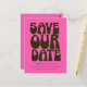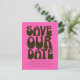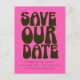 Retro Groovy 70s Gras Rose Chaud et Vert Foncé Enregistrer La Date Carte Postale