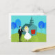Cette carte postale Retro Mariage Couple vous permettra d'entendre des cloches mariages. Le jour de leur mariage, le style des années 1960, minimaliste, est orné d'une mariée et d'un marié. Le couple heureux a l'air assez bon pour être debout sur un gâteau mariage. Mais ce n'est pas le cas. Ils se tiennent sur une pelouse luxuriante et verte. Le debonaire M. porte un tuxedo noir classique avec cravate arc noir. A bas, mesdames ! Il est pris ! Il tient la main de sa belle Mme, qui a l'air très rayonnante dans sa longueur de thé, robe blanche avec taille ajustée et jupe flarisée. Elle ressemble vraiment à une princesse avec sa tiare et son voile mariage blanc et gaussant reposant sur sa jolie tête blonde. A côté, un chemin dans l'herbe mène à la chapelle la plus charmante du monde. L'église, surannée, turquoise et turquoise, est le lieu idéal pour dire "Je le fais !" Oui, voici l'église. Voici le clocher. On ne peut que supposer que derrière ces portes rouges vifs, les doubles portes sont une pièce de gens qui attendent de partager le bonheur de ce couple. Le cadre pittoresque comprend également quatre caricaturistes, stylisés, dans les tons bleus. C'est une belle journée pour un mariage, comme on peut le voir depuis le ciel d'aqua impeccable. La seule chose qui manque à ce design moderne du milieu du siècle est le riz, et nous pouvons supposer que ce sera à venir. Ce design peut être utilisé comme enregistrer les cartes de dates, des notes de remerciement mariages, des invitations informelles, et pour féliciter vos jeunes mariés préférés.