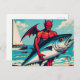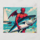 Carte Postale Retro Pop Art Devil avec un tunafish sur la plage
