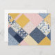 Une jolie carte postale à motifs en patchwork. L'impression combine des sections jaunes, bleues, roses et blanches avec des flûtes ditsy.