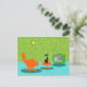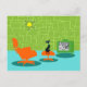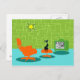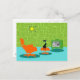 On dit que les chiens ont des propriétaires et les chats ont du personnel. Le félin sur cette carte postale rétro Space Age Kitty ne pouvait pas être d'accord plus! Décoré dans un style minimaliste des années 1960, cet établissement propose un chat noir élégant dans un salon moderne du milieu du siècle. La chambre sophistiquée présente un mur vert en pierre. La moquette est un aqua aux ombres turquoises. Les meubles de la chambre comprennent un jaune, un croquis de Spoutnik, un transat orange avec tabouret assorti et une télévision verte avec oreilles de lapin. Le chat noir chanceux est perché sur le tabouret devant la télévision. Son spectacle favori se déroule ! Sur l'écran de télévision, on peut voir une famille de télévision classique en noir et blanc qui résout tous les problèmes de la vie dans une émission d'une demi-heure. Ce design est parfait, si nous le disons nous-mêmes.