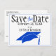 Envoyez cette carte postale d'annonce de modèle "Enregistrez la date" bleue et noire avec code QR pour votre réunion de classe. Personnalisez le texte dans les champs de modèle pour l'avant et l'arrière, ajoutez le lien approprié pour votre code QR ou modifiez-le à l'aide de l'outil de conception pour sélectionner un style de police, une taille et une couleur de votre choix.