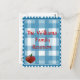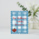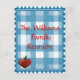 Un joli chèque bleu et blanc style campagnard et des graphiques d'une pomme en forme de coeur, donne à cette carte postale le charme d'antan parfait, idéal pour les mises à jour des réunions de famille.