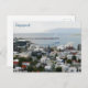 Carte postale avec photo de la ville et du port de Reykjavik, Islande.