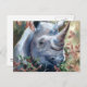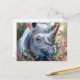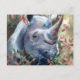 Un tableau original à l'huile de Brenda Thour d'un portrait de rhinocéros avec un arrière - plan feuillu abstrait en vert et marron. Référence photo du Dr Thomas Trainer. Copyright par Brenda Thour 2008.