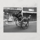 Photo en noir et blanc d'un pousse-pousse transportant deux touristes dans les rues de Kyoto.