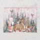 Carte Postale Rinder d'aquarelle rose, Snowman Joyeux Noël