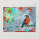 L'image est tirée d'un tableau original d'un rouge-volant assis sur un fil en regardant son épaule au-dessus d'une vieille carte postale estampillée à la main.