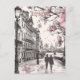 Cette carte postale de voyage, dans le style d'illustration croisée, présente un couple qui marche romantique dans les rues de Londres. C'est une carte postale formidable pour célébrer les anniversaires des relations initiés à Londres, au Royaume-Uni.