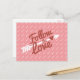 Envoyez un peu d'amour et illuminez la journée de quelqu'un avec une note manuscrite ! Cette charmante carte postale Follow The Love présente de petites flèches d'amour surlignées d'un arrière - plan rose pastel. Les cartes postales Blank Love sont une alternative économique aux cartes de voeux lorsque vous voulez envoyer une note rapide. Communiquer avec les clients et les clients Notes personnelles Montrer de la gratitude aux amis et à la famille pour les cadeaux Mariages et douches nuptiales Joignez-vous à des paniers cadeaux, et des sacs de bonté Quelques autres cartes postales que vous pouvez apprécier...