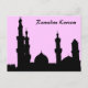 Une mosquée silhouette contre un arrière - plan rose. Un accueil pour le Ramadan ou l'Aïd - customisez le texte.