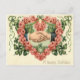 Carte Postale Rose de poignée de main Coeur quatre feuilles Clov