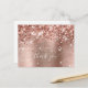 La parties scintillant d'or rose brillante imitation filée met en évidence sur le bord gauche sur une feuille de métal brossé rose à l'or rose faux. Le texte de remerciement girly moderne dispose d'une police calligraphie blanche élégante avec queues ou swashes décoratifs bouclés. La parties scintillant et la feuille sont des graphiques arts numériques qui s'impriment comme une photo sur votre carte postale.