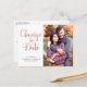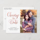 Carte postale moderne Script Mariage Postponement ou Date Change avec votre photo et écriture de script tendance en feuille d'or faux rose. Si vous avez besoin d'aide ou d'articles correspondants, veuillez nous contacter à cedarandstring@gmail.com