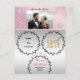 Le design associe un motif métallique or rose à un argent. Le floral en argent gaufré contient des informations que vous souhaitez transmettre à ce moment-là. Un numéro d'or et de parties scintillant unique et une rangée de perles blanches ondulées derrière la photo personnalisée ajoutent du chic au design final. Customisez votre propre message au verso de la carte.