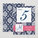 Carte Postale Rose Navy Blue Mariage damassé Numéro de tableau