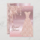 Elégante, classique, glamour et girly style nuptiale invitation à la douche nuptiale. Une robe en or rose avec fausse parties scintillant rose en or goutte à goutte. Rose doré foncé faux arrière - plan à l'apparence métallique . Avec le texte : Douche nuptiale sur l'avant écrite avec un rose moderne de couleur foncé écriture de style lettré à la main. Ajoutez les détails de votre événement sur le dos, en lettres gris foncé.