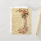 Illustration vintage d'un vase en verre enveloppé dans un ruban rose soie et rempli de roses de thé rose. Écriture manuscrite dans l'arrière - plan et le long des bords.