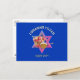 Carte postale élégante bleu israélien ROSH HASHANAH juif du Nouvel An, montrant une étoile de David avec un bol de pommes et un plat de miel. Ci-dessus se trouve le salut L'SHANAH TOVAH, écrit dans la typographie blanche et faux or, suivi par ROSH HASHANAH dans le texte hébreu en bas. TOUT TEXTE (à l'exclusion du texte arrière - plan) EST PERSONNALISABLE, vous pouvez donc créer votre propre texte et orthographe préférés (par exemple Shana Tova), avec les modèles faciles à utiliser. Choisissez parmi une large sélection de cartes de célébration juives élégantes et personnalisables et de cadeaux conçus par Berean Designs.