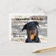 Cette carte postale indique, "Rappel de vaccination", et est facile à customiser avec le nom d'un animal de compagnie et d'autres renseignements commerciaux nécessaires pour vos clients. Cette adorable carte postale montre mon Rottweiler, Heidi. Assis haut avec sa tête légèrement coincée sur le côté, Heidi écoute avec impatience que je lui dise de lui chercher son bâton.
