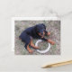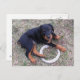 Cette précieuse carte postale présente notre comique chiot Rottweiler, Heidi. Elle est allongée sur la pelouse avec un bout d'herbe dans la bouche et une frisbee mâchée à côté d'elle essayant de paraître innocente. Cette carte postale est sûre d'apporter un sourire et d'être un favori pour tout amoureux des chiens. Elle est un chien doux et intelligent qui aime tout le monde. Il n'y a jamais un moment ennuyeux avec elle pour nous divertir.